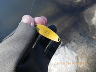 8時40分〜12時30分、晴れ、第1ポンドN、第1ポンド@、水温1.4度、北風、17尾。開始30分、まったく当たりなしでした。やはり3連休のど真ん中、こんな日にいい思いをしたことはありません。水温も低く、活性も低かったと思います。@は管理人さんも「ここは釣れないよ」と言われるぐらいで、私も過去大釣りをしたことはありませんでしたが、ほとんど動かない水車の下に居着きがいることが多いのです。今日もいるようでした。Nでミノーで5連荘した後に唯一空いていた@に入り、狙いは居着きに絞りました。動画で掲載しましたが、特に大型ではありませんでしたが苦労してヒットさせました。