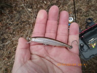 8時〜11時、曇り、水温8.4度、第2ポンドパイプ横、12尾。ロックフィッシュ狙いでした。水温とは別に急に冷え込みました。久しぶりに手がかじかみ、足が震えました。おそらく気候のために魚の活性はいまいちだったと思います。浮いてはいるのですがバイトしても針に乗りません。ディープというよりボトムでした。ミノーを這わせたところ、ロックがやんわりバイトしてきました。目標は達成です。