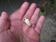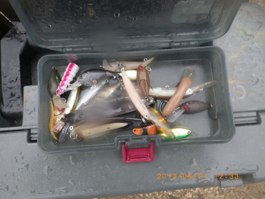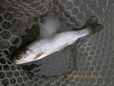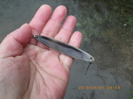 8時45分〜12時15分、大雨、冬に逆戻り、昨夜は雪だったとのこと、水温7.4度でしたが、指の感覚はまったくなく、ルアーの交換はできないわ、キャスト時にラインがリリースできないことが何度もありました。