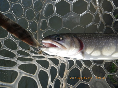 12時15分〜16時45分、晴れ、強風、水温7.6度、第2ポンドと第3ポンドの間、山側奥、第2ポンド落水パイプ横。40尾。強風だったのでスプーンは重めで竿先下げて相手合せ、後は風に負けないクランク系での勝負でした。15時30分過ぎに活性が上がったような気がします。落水パイプ横では居着きの大物を(たぶん同じやつ)2度掛けたのですがバラシ、1回目がかすったようなバイトだったので2度食ったのだと思います。3度目は別のやつでした。いずれも足元でピックアップ寸前に食ってくるのでなかなか合わせ切れません。次回の楽しみです。