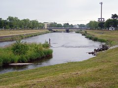 平和橋の下流側ではフライマンが竿を出していたが、あまり思わしくない様子。