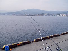 先客は2組のみで、北防波堤の中間部から外海側に向って全力投球し、車の中で魚信を待つ。