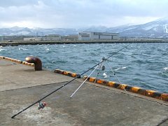 天候があまり思わしくないとのことであったが、せっかくの平日の休み、岩内港ならばどこかしら竿を出せる場所があるはずと強行した。