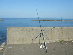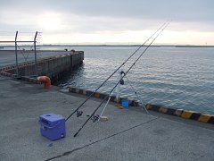 午前5時前に釣り場に到着すると、すでに多くの先客が釣りをしているが、釣り座にはまだ余裕があり、運良く左手の岸寄りが空いていたので迷わずそこに入る。