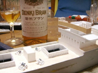 とりあえず船体に仮置きして一段落です。ブリッジの高さと船体の高さのバランスが難しいですが感じよく出来た場合はお気に入りの電気ブランで・・・