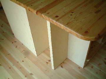前にも説明しましたが36mm厚のパイン材の集成材を三枚張り合わせました。