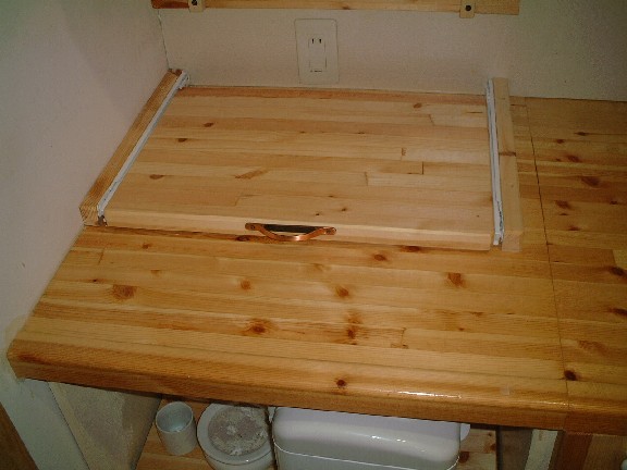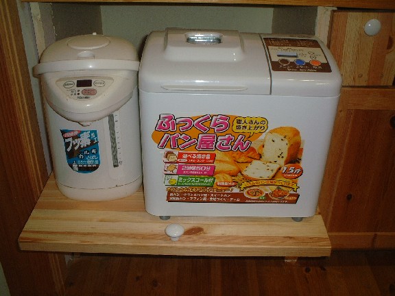 同じ原理でパン焼き機の置き場もスライドできるようにしました。
