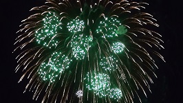 演芸大会の締めくくりに盛大に行われた花火大会。人の姿が見えるほど近くの防波堤から打ち上げられる4000発の花火は圧巻でした。