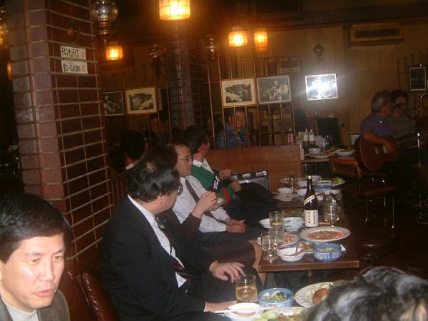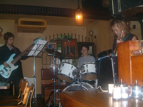 2003年10月17日(日) 橋の下ライブ 左からから欽也(ベース)、松川(ドラム)、山崎(ギター) 後藤、原、中尾、服部、真川、成瀬 原田、森田、後藤、原 秋場 祥太郎(ギター) かすみ(ヴォーカル) 成瀬氏の弾き語りはすばらしい。次回は皆も見に来る価値あり。 原田、後藤、真川、森田 ちらりと見えるのは高田、そして谷口、写真撮影は大久保 戻る