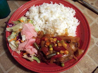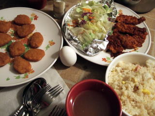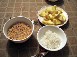 夕食は、ハワイアンヌードル(Please wait for three minutes)&ライス(味付けのり・塩昆布付き)&パイナップル。