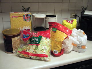 でた!!インスタント味噌汁32食分&水戻しあんこ餅(これが結構うまい)。