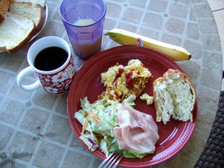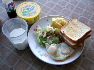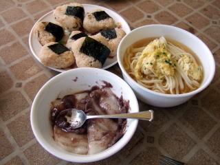 青い空と海を見ながら&波の音を聞きながら食べる日本食(お粗末ですが)の何と美味しいことか。