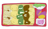| 「お弁当は無理かぁ・・」で、飲食店を探していたところ、「ここなら食べられるかも」「食べてる人いるし・・」、のお弁当場所発見、2席ゲット。 | ![]() 1,300円 |