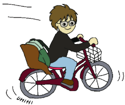 | 港からは、上り坂。 貸自転車屋さんまで、地図では2分。 実際は、坂でぜいぜい言いながらの10分、ああたいへん。 |