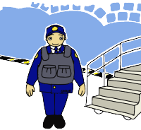 | BACK | “船の雑居房で雑魚寝”ファッションのワタクシ達・・、綺麗なオフィスビルでは、ちょびっと目立ってたかもね。 ロボットの警備員(機)いたけど・・、セーフ。 |