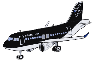 時間通り(遅れてはいけません、乗り継ぎがやばいからね) 黒い外装 黒い内装 黒い制服のCAさんの、スターフライヤーは、関空へGO |