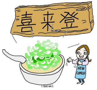 前回行列で断念した、“喜来登” さん お店の前、めっちゃ人人 再度の断念も過る(“よぎる”ってこんな字書くんやね)、過る |
