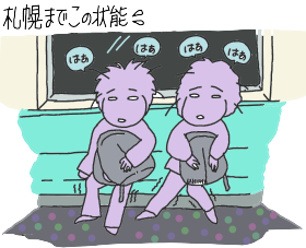 | 大汗と、はあはあが止まらへんワシらを乗せた 結構な乗車率の函館本線岩見沢行 何事もなく、40分くらいで札幌到着 |