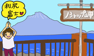 | ノシャップ岬の看板越しに見える、“利尻富士” 綺麗ねぇ、お天気良いからねぇ、最高やねぇ |