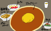 | 昼食は、美味しい、オムカレーとお惣菜バイキング | ||||