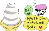 | 美味しいソフトクリームをぺろりと舐めて お土産お土産 |