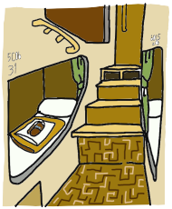 | 乗船して、ベッドメイク(掛け布団用のシーツは自分でね)して、お着換え中 客室ナンバー、寝台ナンバーで呼び出しのアナウンス 「この番号、ワシらやん」 「この放送、ワシら呼んでるやん」 |