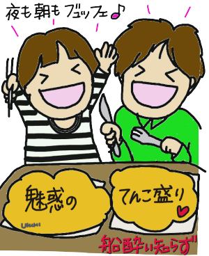 | 「船酔いは、空腹・満腹どっちもダメよ」、というのを見たことがあるねんけど 「バイキングで満腹を自制できるのか」と問われたら 自信をもって「無理」と答えるワシら |
