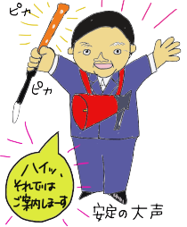 | 緊急逮捕を逃れた、拡声器添乗員 「私は皆様に最後のご挨拶を・・」 「この後は流れ解散で・・」 すでに誘導灯はピカピカ、ぴかぴか、ぴっかぴか |