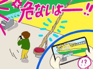 | 何事?、事件?、指名手配犯?、って思ったら 「ロープに近づいたら危ない!!」 |