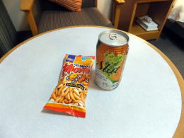 無料の飲み物(アルコールまであるよ)やら、おにぎりやら、サンドウィッチやら、おつまみやら・・、凄い凄い。