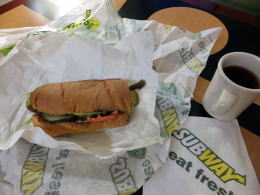 ホットミール、サラダバー(巨大)、ホットドッグ & バーガー類、デザート、ドリンクなんかのコーナ、あぁ迷う迷う。