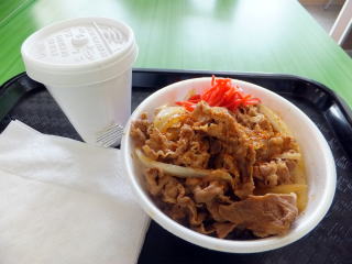 そこで出会った、“BEEF BOWL” と、リトルトーキョーの定食屋さんの、“白身魚のフライ定食” 油もんですけど・・・・。