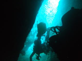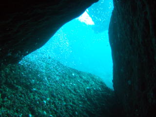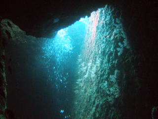 魚は、ちょっと少なめですが、なんといってもここは、数々のアーチ、ケーブ、クレバス、縦・横穴、スリット、ホール、トンネルと穴好き・暗闇好きの人にとってはたまらないポイントです。