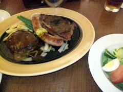 ハンバーグ+ウインナ+ステーキ=カロリーまるけ。
