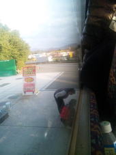 21:56 : 30人乗りだと思う、3列シートのバスは、13人+2人(ドライバー)で、時間前に出発。