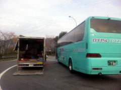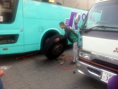 “バスのタイヤ交換” 初めて見たよん。