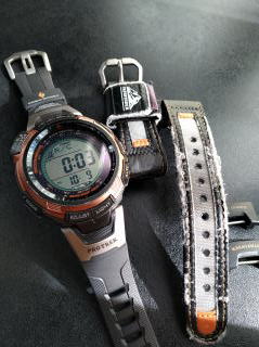 「時計買えますやん」 位の、お値段やったような・・。 材質がね。 初代のは、“ぷーちゃん(キエリクロボタンインコ)” が、囓ったんだよね。 たまたまAmazonで、純正の “ウレタンバンド” 発見。 これで、暫く活躍していただきましょう。 因みに、昨日行方不明になってたのが、このバンド。 郵便受けの天井に張り付いてたのんね・・、Amazon さん ・ 運送屋さん、疑ってすんません。