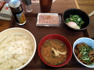 マイブームは、牛丼屋さんの朝食。 すき家さんの、“まぜのっけごはん朝食(350円)” 10分足らずの食事時間、8回くらい 「美味しい」 って、独り言。