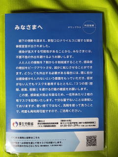 『東京都以外の46道府県で準備中』 あれのこと・・、“アベノマスク” と称される、与党議員にも人気のないやつ。 ワシ、“東京民” やけど・・、届いてへんよ。 もしかして・・、うちだけ? マスク不要な人には、“10万円+1,000円” で、どう?