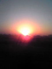 乗ったら見えました、左手に『日の出の太陽さん』、右手に『雪化粧の富士山さん』