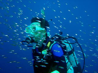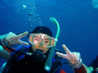 プレッシャーで心臓ばくばくの一本目、講習は “スイスイ”、さすがモルディブ帰り。