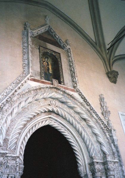 この種の場所を陣取るのはドイツ人団体様ご一行である。フェーデリコはホーエンシュタウフェン家の皇帝だからドイツにも縁が深い。添乗員の掲げる旗の下、饒舌な解説が繰り広げられる。次々とやってくる集団が、私の前に立ちはだかることになった。