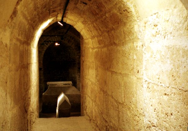 あらためて出かけて宝物館を観て、さらにその奥深くまで入ってみる。石棺の並ぶ地下墓地風の場所があった。ちょっと頭を下げないと通れない細いトンネルを抜けた先にある。さすがに、奥深くまで入って来る人もいない。照明も暗くて、たった一人で歩いていると心細い。