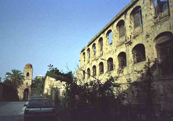 教会を背に、バス停のある街道に向かう途中、何とも凄まじい廃墟があった。後で調べてみると、イエヒア城というアラブ建築の跡のようだ。サン・ジョバンニ・デイ・レッブロージは、もともと病院と一緒に建築されたもので、この城も教会と一体のものだったらしい。今はシンプルな小さな教会だが、昔はもっと規模が大きく、複雑な建築物だったのだろう。