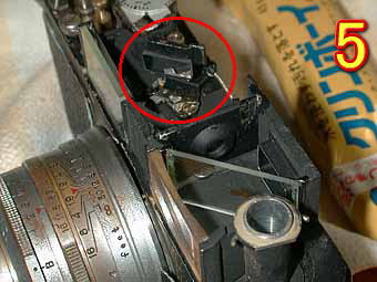 今回は、ペトリの異端児オートメイトの分解です。私も手に入れるまでは、聞いたことのない機種でした。大きな特長としては、倍率の高いアルバタ式ファインダーと外見的にはM3を思わせるところです。ただ内部的に見ても従来の35シリーズとあまり変化がありません。 写真1は、ヘリコイドブロックとシャッターユニットを外したところです。1がヘリコイドブロック、2がシャッターユニットです。写真2、3で紹介するようにここにペトリの特長と故障の原因になる部分が見ることができます。 写真2は、ヘリコイド部を見たところです。赤矢印のレバーはシャッターボタンへ連動、緑矢印の部分がシャッターチャージ部へ連動しています。この部分は非常に良く作られており故障はまず無いです。 写真3は、シャッターユニットとそれに付随するリングです。赤矢印部分がシャッターボタンに連動、緑矢印がシャッターチャージに連動する部分です。このチャージ部分がペトリカメラの内部的な特長になり、故障の多発する部分になります。チャージ動作を説明すると青矢印方向にチャージ用リングが回転します。そうするとシャッター内部と連動するチャージ用レバーが青矢印方向に上にあがりシャッターをチャージすることになります。このチャージ用レバーの中に見えるネジが使っているうちに緩んでしまいやがてチャージができなくなってしまいます。たいていこの部分が巻き上げだ出来てもシャッターが切れないというトラブルの9割以上の原因になります。へまをするとこの部分のネジが完全に外れていることもあります。ただこの部分まで分解するには、非常に知恵が必要で非常に苦労をしますので分解初心者の方は手を出さないほうは無難です。はっきりいって私もかなりいつでも苦労しています。へたに後群のリングを力を入れて外すと部品が簡単に変形しますし、最悪部品が完全に折れてしまい完全なジャンクとなってしまいますので注意が必要になります。 写真4は、トップカバーを外したところです。美しいアルバタ式ファインダーの中身がみることが出来ます。トップカバーを外しただけでも十分ペトリの独自性を感じることが出来ます。 写真5はファインダー部を拡大したところです。赤丸部分で距離計の調節をするのですが非常にやりにくいカメラでもあります。おまけに良くくるいます。ここがペトリの醍醐味ですか(笑 写真6は、ペトリ自社制のシャッターの内部です。やはりシャッターメーカーのシャッターより構造的には雑に思えます。細かい部分での故障も多いです。 最後にペトリの悪口ばかり書いているように思えますが実は個人的には非常に好きなメーカーです。個性的なラインナップにペトリのよさを感じています。今の時代まで残っていたらどんなカメラを作っていたと思いますか? |