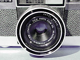 レンズ: フジノンR47mm F2、8(3群4枚) シャッター: コパルマジック B、1〜1/500 シンクロ: MX接点 ファインダー: 採光式ブライトフレーム 焦点調節: 前玉回転、距離計連動 露光調節: セレン光電池使用AE,マニュアル可 フィルム送り: レバー巻き上げ、クランク巻き戻し フィルター: 35、5mmネジ込み 寸法: 140×88×73mm 重量: 720g 発売: 1962(昭和37)年3月 価格: 16000円 |