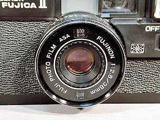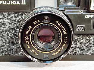 レンズ: フジノン38mm F2、8(4群4枚) シャッター: プログラム電子(1/8〜1/500),セルフタイマー シンクロ: ストロボ内蔵 ファインダー: 採光式ブライトフレーム 焦点調節: 目測、ゾーンフォーカスマークつき 露光調節: Cds使用完全EE フィルム送り: レバー巻き上げ、クランク巻き戻し フィルター: 46mmねじ込み 寸法: 130、5×73×54mm 重量: 280g 発売: 1978(昭和53)年10月 価格: 29800円 |