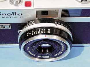 焦点調節: 全群ヘリコイド距離計連動、基線長25mm,倍率0、5倍
