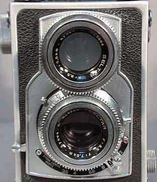 第二回 SELCAFLEX (協和光学のカメラ?) ![]() 今回の謎のカメラは、2眼レフのセルカフレックスを紹介したいと思います。2眼レフ自体資料が少なく、四畳半メーカーを多数乱立していた為、素性のわからない物が多いと思われます。私の知識不足かもしれませんがもし素性がわかる方がいらっしゃればメール、掲示板で連絡を頂きたいのですが。 私の持っている資料には、この2眼レフの資料がまったくありません。よくある輸出用の2眼レフではないかと思っていたのですが、似たようなスタイルを持つ2眼レフが確認出来ないので謎となっております。 1番 の謎は中の写真の文字にある[KYOWA CAMERA WORKS]の文字です。きょうわと言う会社名でまず思い出すのは協和光学です。このメーカーはフローラシックスなどの蛇腹カメラを作っていたメーカーです。当時の資料を見てみてもフローラシックスの広告、記事はあるのですがこのメーカーで2眼レフを作っていた痕跡がありません。手元にフローラシックスが無いのでピントフードのマークが協和光学の物か確認出来ないでいます。もしかしたら他にも「きょうわかめらわーくす」というメーカーが存在していた可能性があります。 細かなスペック的には、 レンズ SELTER 75mm F3,5 シャッター SELCA B,1〜1/200 前玉回転式、赤窓確認式 あと1部クロスネジが使用されているので昭和30年前後のカメラではないかと思われます。(もしかしたら後から付けられたものかもしれませんが)各部品は非常に材質的にも、構造的にも良くできています。シャッターボタンも横に出ている形になっています。前玉回転式なのでこの時代の覇者であったリコーフレックスのコピーなのですがいろいろと手が加わっていてよくできた2眼レフに仕上がっています。シャッター内部もリコーフレックスと違いスローガバナーもありNKSのシャッターに近い構造になっていました。 情報をお待ちしております。 |
