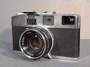 レンズ: Gズイコー42mm F1,8(5群7枚) シャッター: セイコーシャSLV00番、B、1〜1/500 シンクロ: MX接点 ファインダー: パララックス自動修正付き採光式ブライトフレーム、0、75倍 焦点調節: 直進ヘリコイド距離計連動 露光調節: セレン光電池式,EV6〜17(ASA100) フィルム送り: レバー巻き上げ、クランク巻き戻し フィルター: 寸法: 140×87×68mm 重量: 780g 発売: 昭和33(1958)年12月 価格: 34800円 |